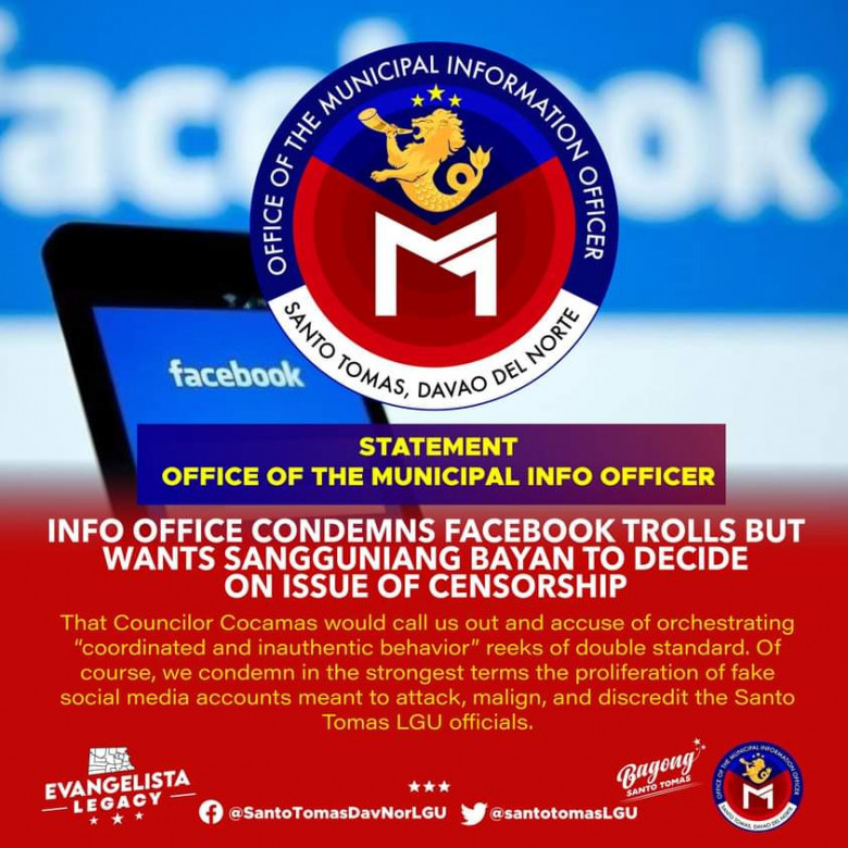 "Of course, we condemn in the strongest terms the proliferation of fake social media accounts meant to attack, malign, and discredit the Santo Tomas LGU officials," he said