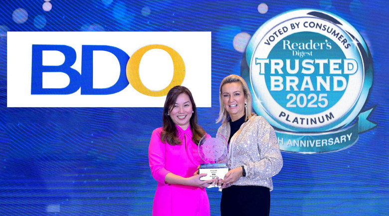 At the 27th Reader’s Digest Trusted Brands Awards, BDO Unibank reaffirmed its standing as one of the most trusted financial institutions in Asia. Jean L. Avendaño, First Vice President and Head of Cards Business Growth, accepted BDO’s 6th consecutive Platinum Award in the Bank category from Sheron White, Retail and Sales Advertising Director for Reader’s Digest Asia Pacific.