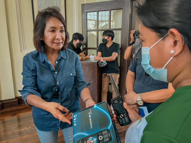 Cebu Provincial Governor Gwen Garcia,Cebu Provincial Police Office Director PCol Engelbert Z. Soriano, and Rainer Riger received the satellite phone for use in Cebu and Dinagat Islands.