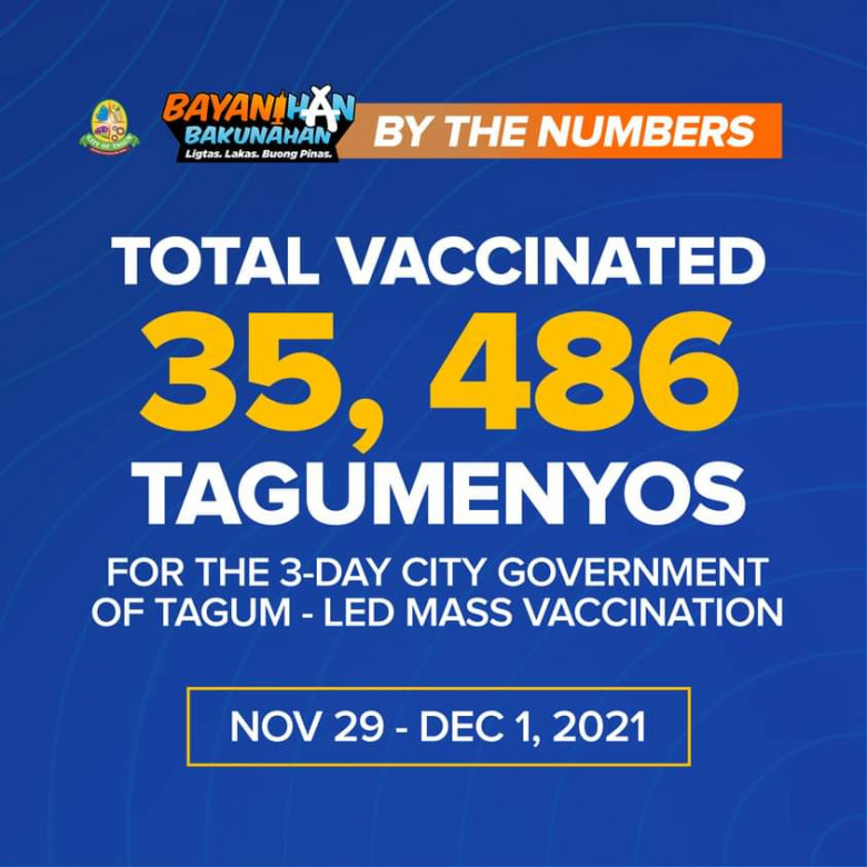 Sa nakalipas na Bayanihan Bakunahan na nagsimula noong Nobyembre 29 , nagtala ang Tagum City 35,486 na mga indibidwal na nabakunahan.