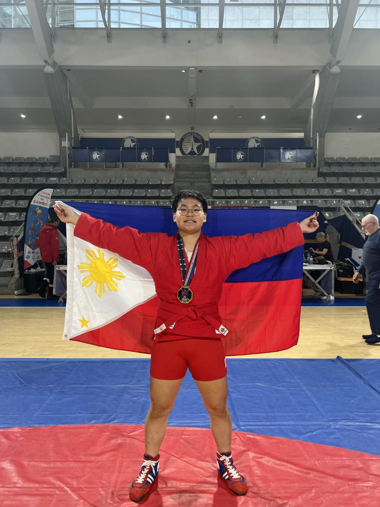 A promising Davaoeno Sambo practitioner won a gold medal in the tough and prestigious 2024 Grand Prix de Sambo de Paris in Stade Charléty salle Charpy,17 avenue Pierre, Paris, France.