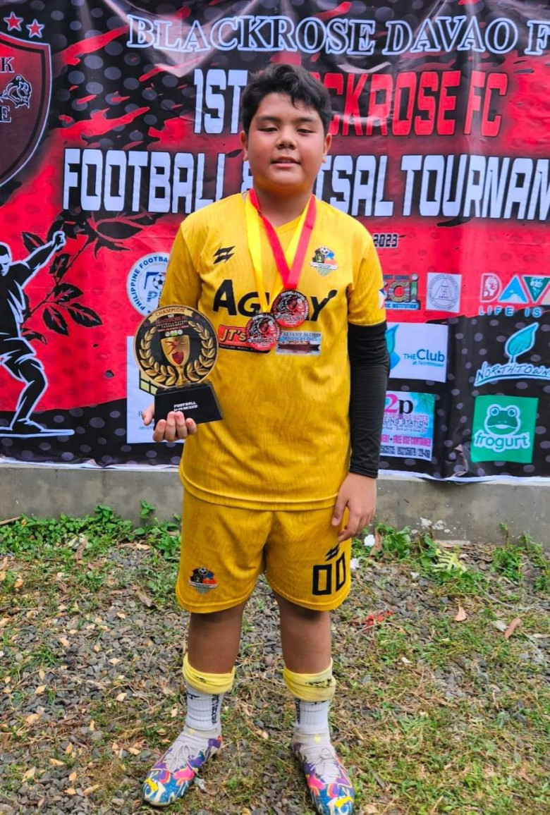 Joshua Gregory Calamba, a promising football player from Barangay Talomo, played superbly for his team in the tournament.