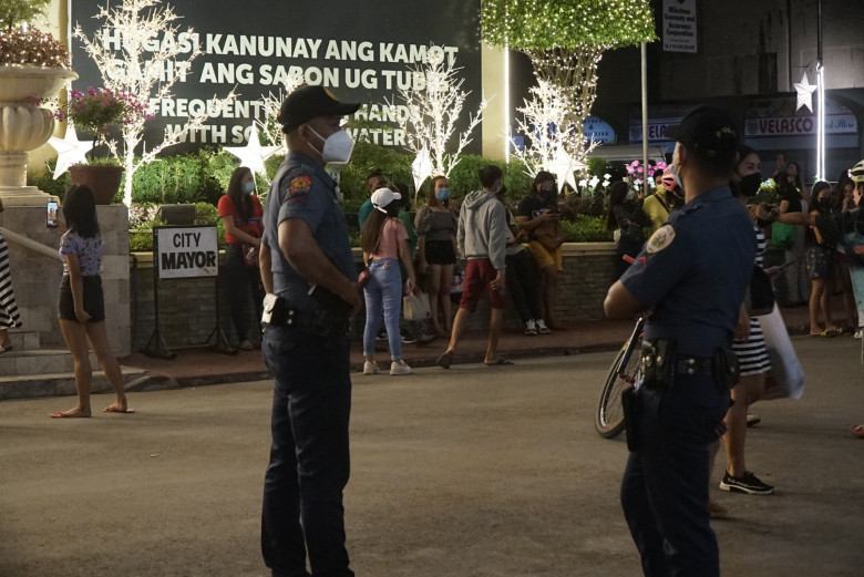 Police and auxiliary personnel of the Davao City Police Office are reminding people who take time visiting the City Hall's Christmas light display, to maintain physical distancing and not to stay long in the area to avoid crowding.