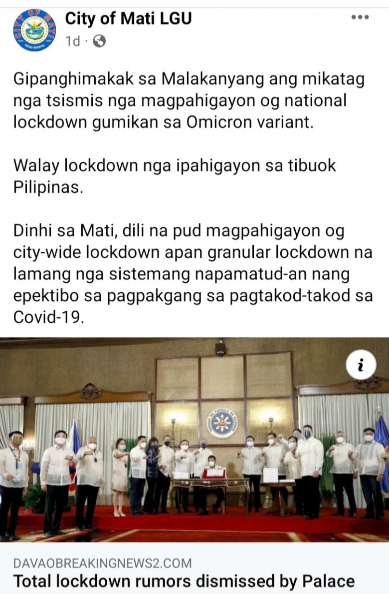 Nilinaw din sa nasabing post na walang lockdown sa buong siyudad nito at maging sa buong bansa matapos pinasinungalingan ng Palasyo ang mga kumakalat na audio recording na may mangyayaring lockdown.