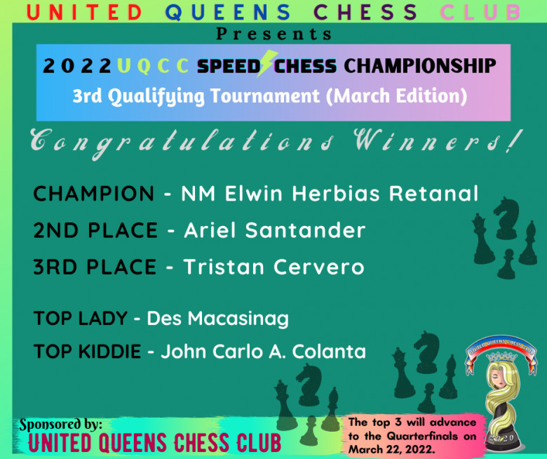 Last November 12, Retanal also won the tough Riyadh Chess League Open Tournament for the second time at the Lulu Hypermarket Murabba, Riyadh, Saudi Arabia.