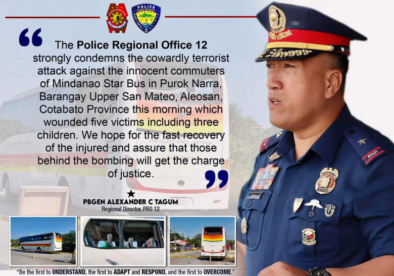 Kinundena naman ni PRO 12 Regional Director Brig. Gen. Alexander Tagum ang pagpapasabog at kinumpirma nito na isa itong terror attack.