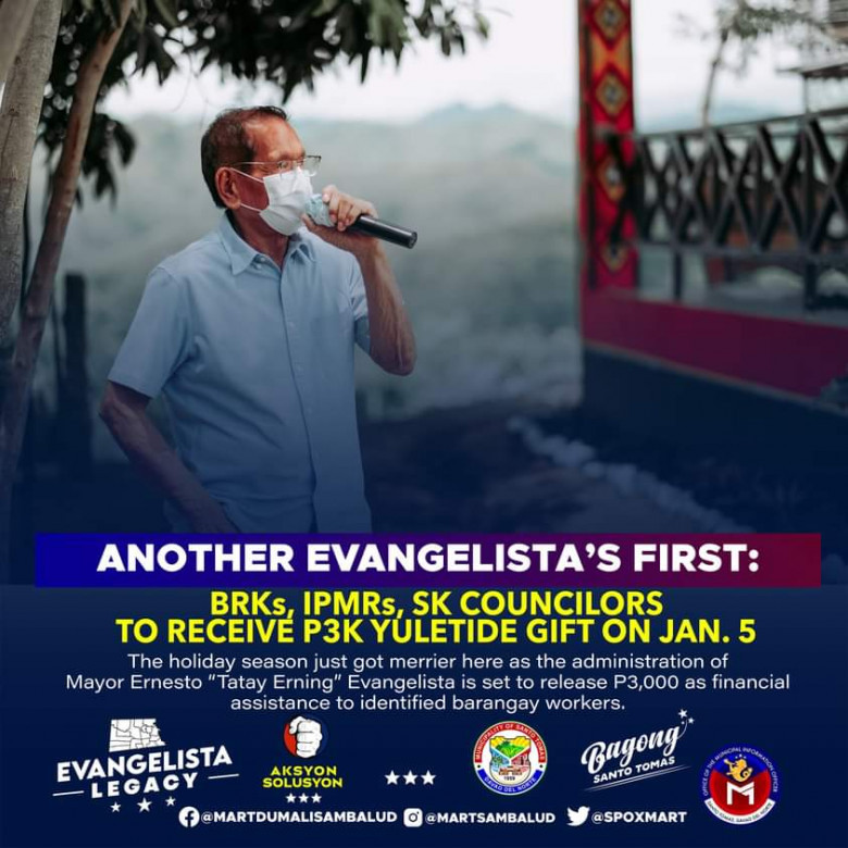Evangelista said this is the first time under his administration, that Barangay Record Keepers (BRKs), Sangguniang Kabataan (SK) Councilors, and Indigenous People’s Mandatory Representatives (IPMRs) received a financial assistance as a yuletide gift.