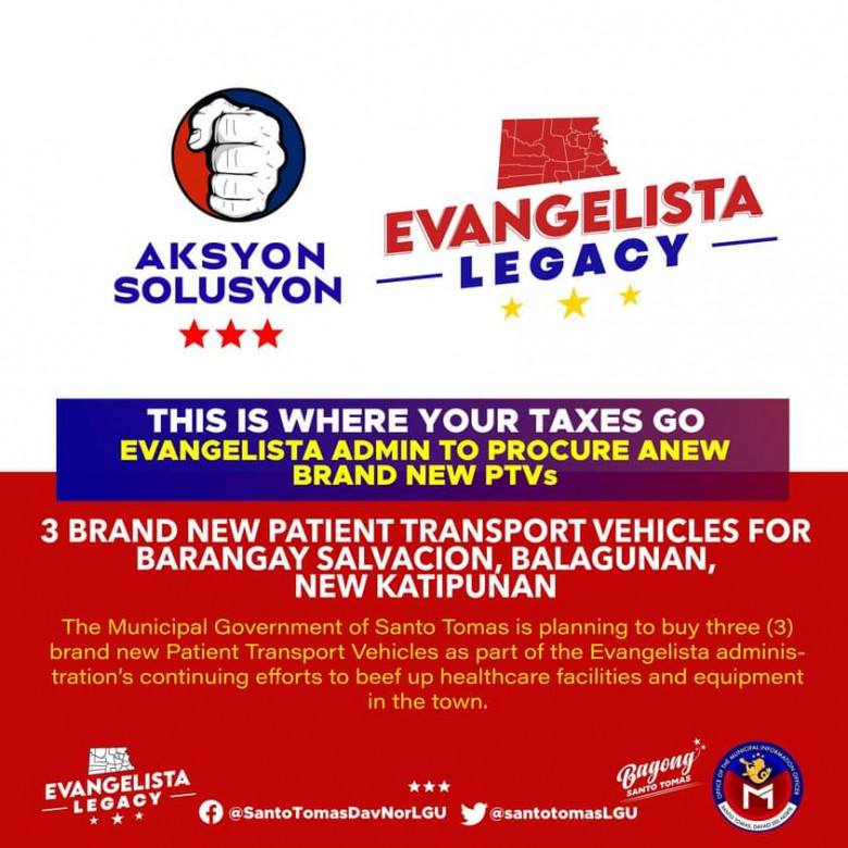 Evangelista-Lapiña said these PTVs will be dispatched to Barangays Balagunan, Salvacion and New Katipunan.