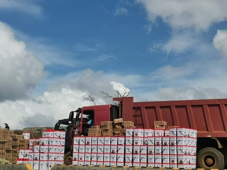 Gihatod sa grupo sa DSWD ug Office of Civil Defense (OCD) 11 ang mga non-food items alang sa mga residente sa Dinagat Islands sa Surigao del Norte. Hulagway: DSWD 11