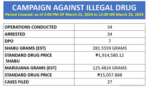Since the war on drugs declaration, DCPO has already launched 34 anti-illegal drug operations and arrested 34 persons.