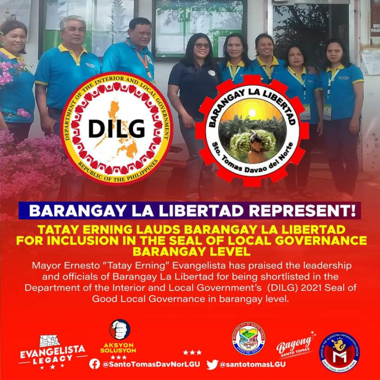 “Dakong garbo sa Santo Tomas LGU na na-short list ang Barangay La Libertad para sa Seal of Good Local Governance Barangay level. Kini nagpakita lang na seryoso ang liderato ug mga opisyales sa ilang mga obligasyon isip mga opisyales sa barangay na ihatag ang tama ug sakto na serbisyo sa atong katawhan diha mismo sa ilang barangay,” Evangelista said in a statement released on Wednesday (January 5).
