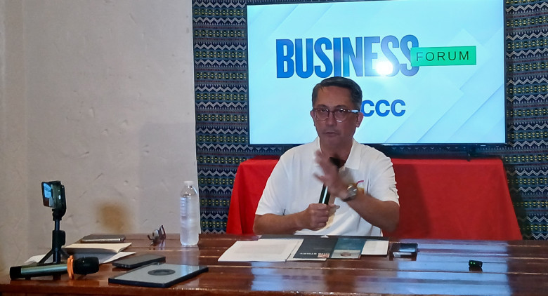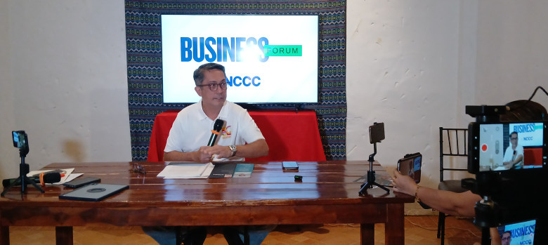Secretary Leo Tereso A. Magno, chairperson of the Mindanao Development Authority, updates the Davao City media on the Mindanao Development Agenda under his leadership during the Business Forum, Friday (Dec.5) at NCCC Victoria Plaza.