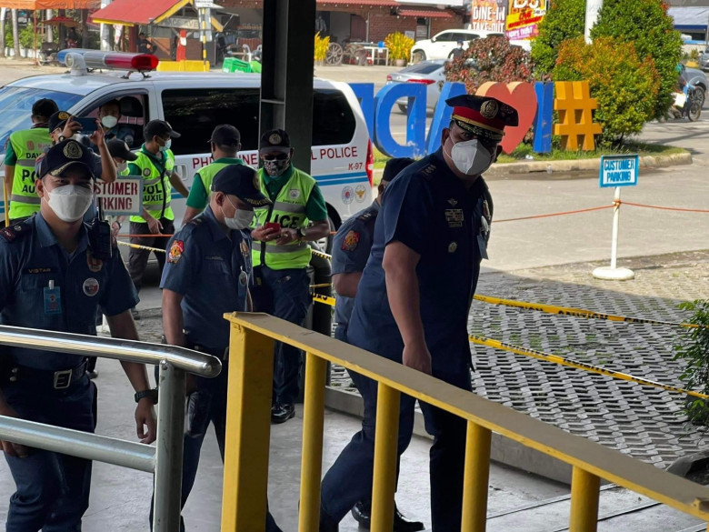 Davao City Police Office chief Colonel Alberto Lupaz personally inspects and supervises the deployed personnel providing security for the Bar exam at ADDU Senior High School in Bangkal Davao City.Photo from Talomo Police Station