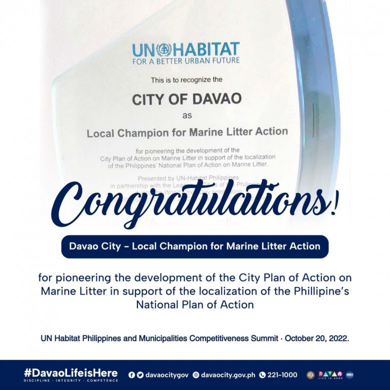 The award was attributed to the city's Bantay Dagat program, which started in 2017 during the administration of former Mayor Sara Duterte and has been continued by current Mayor Sebastian Duterte.
