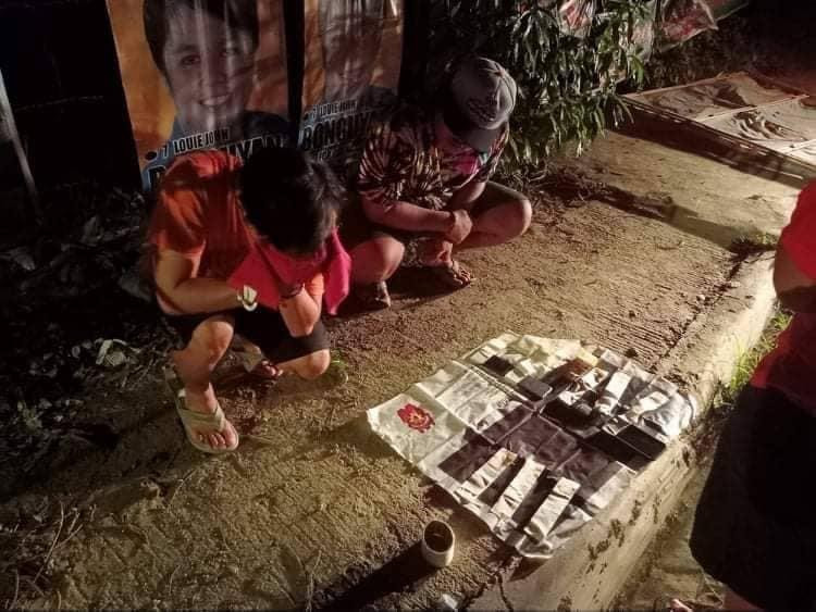 Duha ka suspek sa pagpayuhot og droga sikop sa Mandug PNP. Hulagway:Mandug PNP