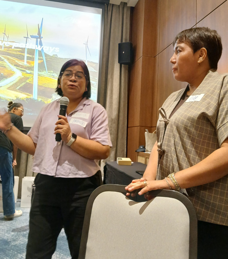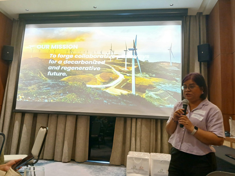 Charo Logarta Lagamon, the assistant vice president and deputy head of corporate communications of First Gen -Energy Development Corporation (EDC) shares to some members of the Davao media the current retail partners-customers of First Gen in MIndanao who opted to use renewable and low-carbon energy in their operations at Seda Hotel on Monday (Jan. 19).
