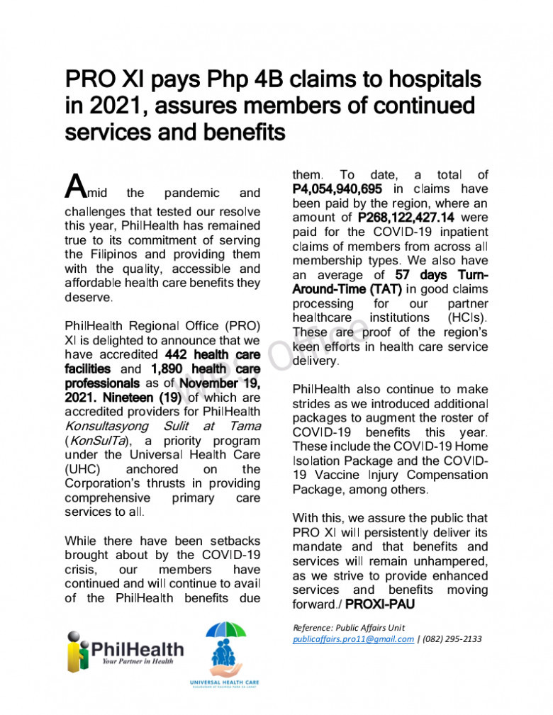 Nakapagtala din sila ng 57 days average TurnAround-Time (TAT) ngood claims processing mula sa kanilang partner healthcare institutions.
