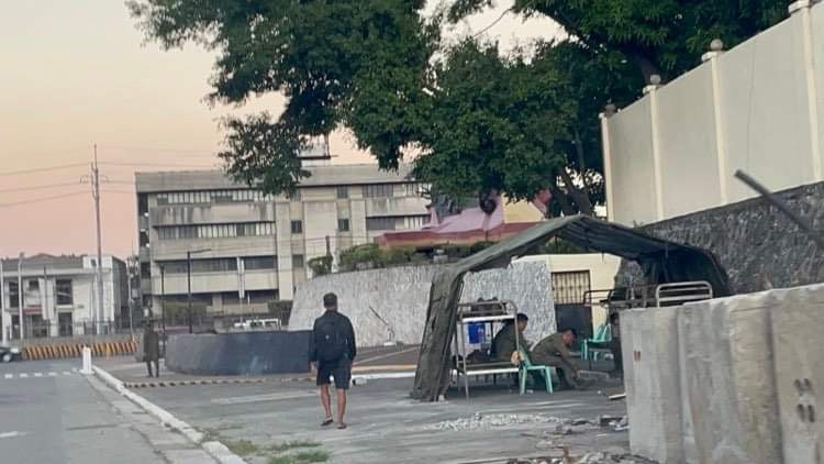 Naglatag ng military tent ang mga sundalo at nagpwesto ng 6x6 truck habang ang mga pulis naman ay may desk na itinayo.