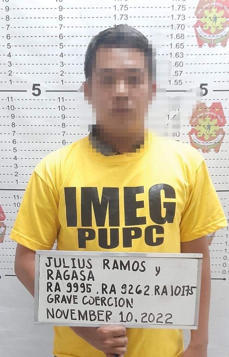 Ang suspek kasamtangang napriso sa IMEG-National Headquarters Custodial Facility sa Camp Crame ug nag-atubang sa administratibong kaso ug mga kriminal nga kasong grave coercion.