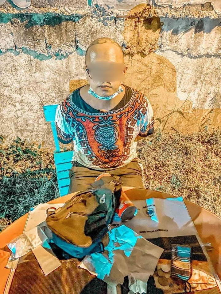 Sumala pa ni Major Rosario Aguilar, hepe sa kapulisan sa Ecoland Police Station, nadakpan ang suspek sa hiniusang pwersa sa Kapulisan ug Regional Special Operation Group-Regional Provincial Drug Enforcement Unit 11 (RSOG-RPDEU) human masakpi sa akto nga nagbaligya ug ilegal nga droga sa nagpakaron-ingnong poseur buyer.
