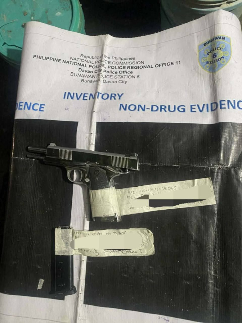 Nakuha gikan kanila ang caliber .22 firearm without serial number; Armscor Model 30, 12-gauge shotgun; 9mm UZI with magazine loaded with three pieces of 9mm live ammunition; ug .357 revolver without serial number.