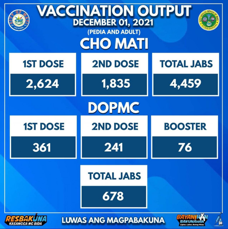 Mukabat sa 11,747 residente sa dakbayan sa Mati sa Davao Oriental ang nabakunahan sulod sa tulo ka adlaw nga bayanihan bakunahan gikan Nobyembre 30 hangtod Disyembre uno.