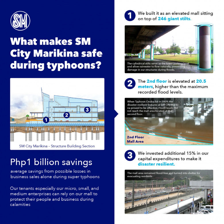 During super typhoons, SM Marikina’s resiliency saves an average of Php1 billion in terms of losses from business sales alone. This means that it is able to help its tenants, especially the micro, small and medium enterprises that depend on the mall for their business continuity and growth.