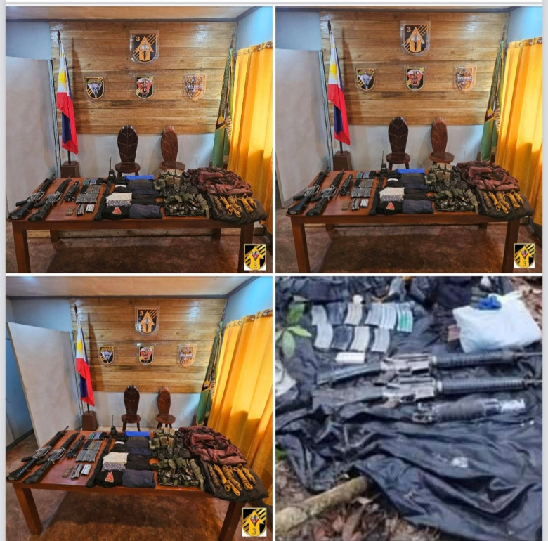Acting on a tip-off from concerned citizens that the area was identified as a Communist Terrorist Group (CTG) transit point and staging ground, the 3rd Special Forces Battalion of 4th ID in coordination with the Provincial Intelligence Unit (PIU) of Agusan del Norte, launched a joint operation which led to the recovery of two 5.56mm M16 rifles, an M203 grenade launcher, commercial radio, ten long magazines, a short magazine, four bandoliers, three backpacks, and assorted personal belongings abandoned by fleeing CTG members.