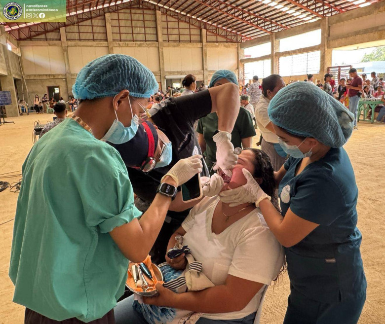 NFEM commander Commodore Ireneo D. Battung, alongside his selected staff officers, led the conduct of “CMO from the Sea,” a strategic initiative designed to deliver essential government services to geographically isolated and disadvantaged areas. The activity was carried out in collaboration with the Civil Military Operations Unit–Eastern Mindanao, the Provincial Government of Dinagat Islands, the Local Government Unit of Loreto, Davao Advent Mission, Camp Panacan Hospital and other stakeholders.