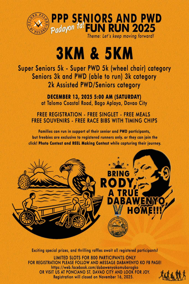 With exciting raffle prizes and special tokens for all finishers, the PPP Seniors and PWD Fun Run 2025 promises to be more than just a race — it is a celebration of movement, resilience, and solidarity among Dabawenyos.
