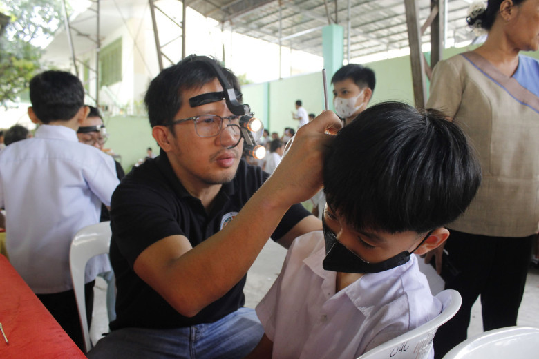 EAR CHECK. An otolaryngologist checks the ear of a student in Sta. Ana Central Elementary School during a Linis Tenga activity on March 4 in observance of this year's World Hearing Day.