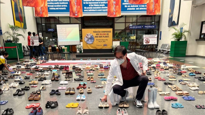 The state-run hospital recently made an art installation of 321 pairs of shoes and slippers at their main lobby to commemorate the death of 321 Filipinos due to tobacco-related diseases.