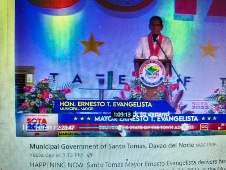 During his SOTA inside the jampacked gymnasium of the town, Evangelista also said that after almost two years of fighting COVID-19, his village is now COVID free.