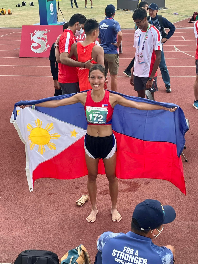 Christine Hallasgo finished second in the event she ruled in the 2019 SEA Games hosted by the Philippines after she suffered cramps in the last 600 meters of the race.
