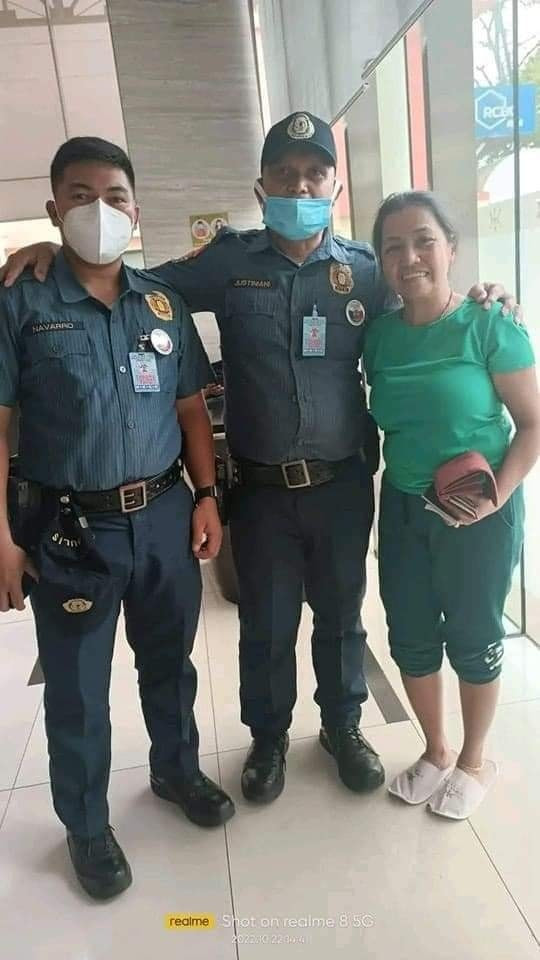The police officer immediately looked for the owner of the wallet, who turned out to be Mrs. Evie Himparo Cougalin.
