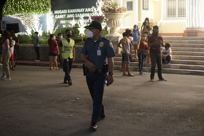 Police and auxiliary personnel of the Davao City Police Office are reminding people who take time visiting the City Hall's Christmas light display, to maintain physical distancing and not to stay long in the area to avoid crowding.