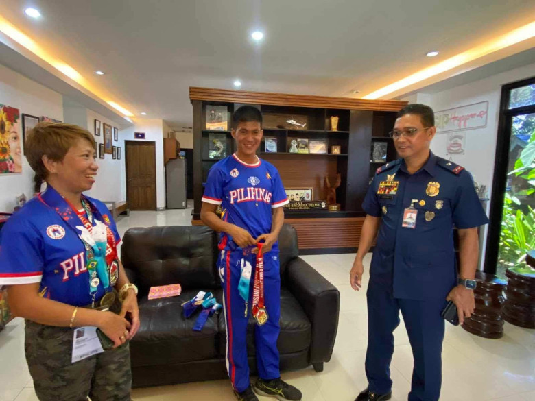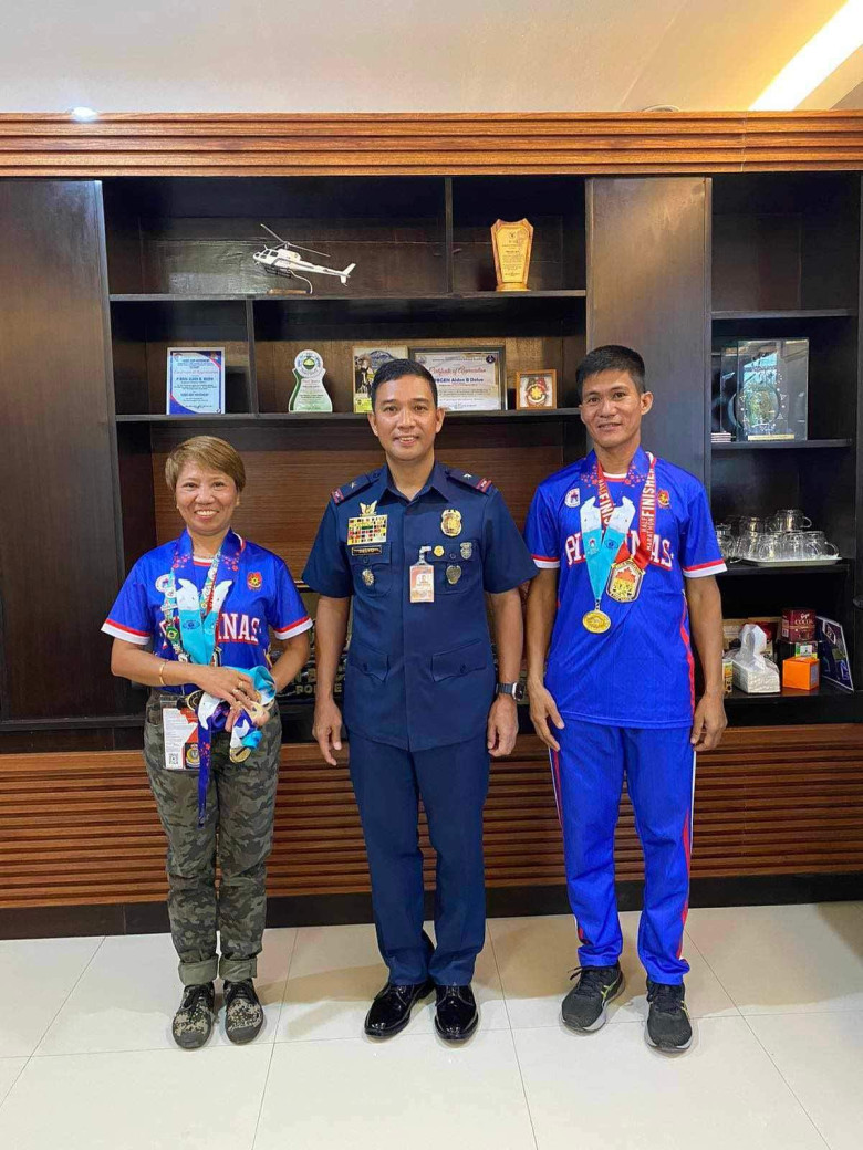 PRO 11 director PBGen Alden B. Delvo praised Police Staff Sergeant Rodel Bustamante for winning the gold in the Men's Masters 40+ 5,000 meter walk.