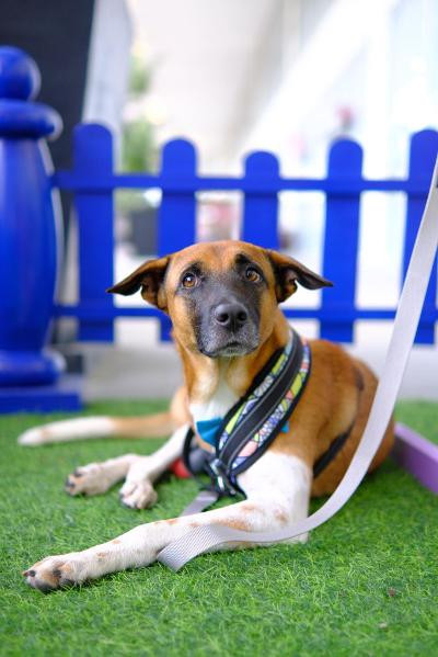 Browny, AG Group’s ambassador dog, inspiring participants during the pet adoption drive at the SM Lanang Paw Park.