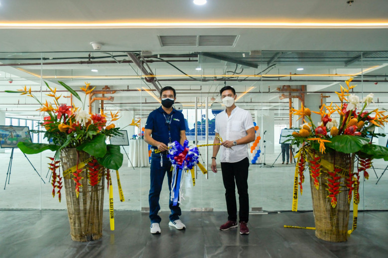 Damosa Land welcomes the US-based BPO company, Nearsol Philippines, Inc., as its new tenant at the Damosa Diamond Tower. Mr. Dennis Arandia (left), Director of Implementations for Nearsol APAC, and Mr. Ricardo F. Lagdameo (right), President of Damosa Land, cut ribbons to signify the turnover of about 3,600 sqm for the office fit-out of Nearsol. Photo Damosa Land