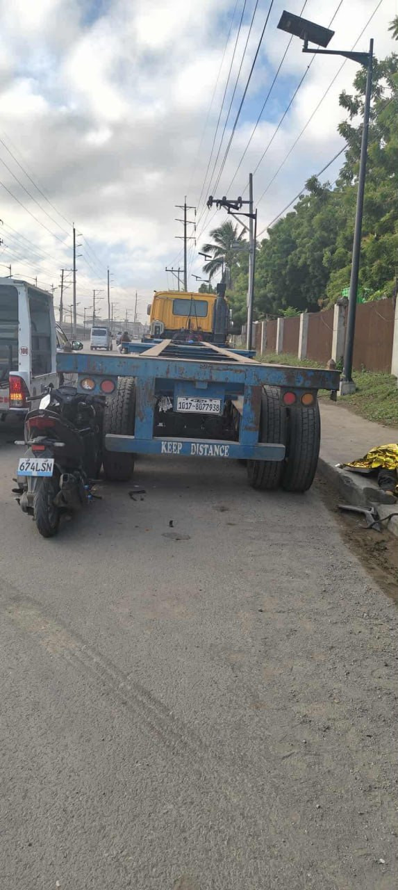 Kabsan ang driver sa motorsiklo human mabangga sa naka-paradang trailing truck sa Daang Maharlika Highway, Tibungco, Davao City, 5:30 Lunes sa buntag, Setyembre 29,2025.