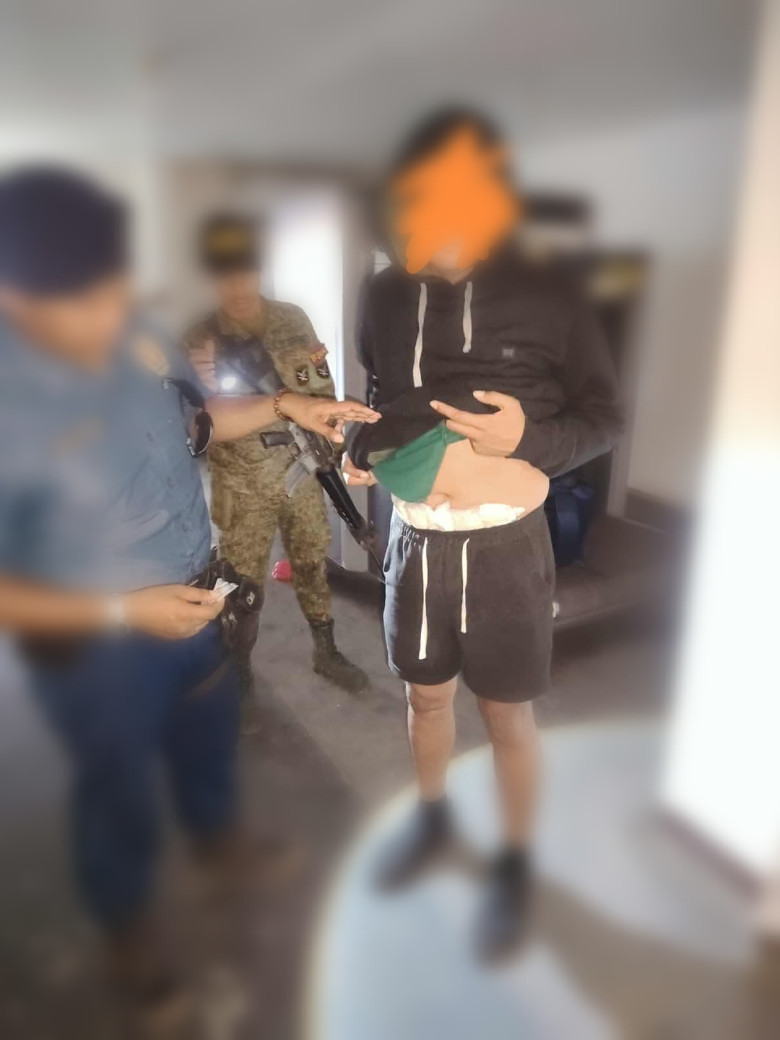Nabulabog pa ang daghang mga gituohang binalot nga shabu nga giipit sa iyang hawak human gimanduan nga ipataas ang suot nga sweater.