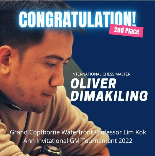 On June 18, Dimakiling showed that Pinoy chessers are world-class athletes after he finished in second place in the tough Grand Copthorne Professor Lim Kok Ann Invitational GM Tournament 2022 in Grand Copthorne Waterfront, Singapore.