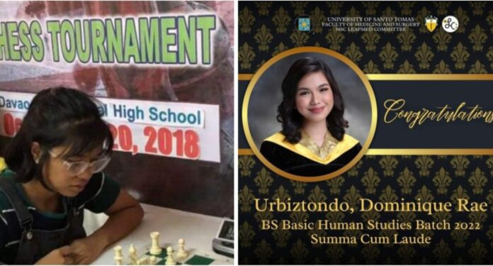 This was proven by Tangub City, Misamis Occidental pride Dominique Rae 'Nikki’ Urbiztondo, a former chess champion who recently graduated from Summa Cum Laude after completing her Bachelor of Science in Basic Human Studies, a preparatory medicine course, at the University of Santo Tomas in Manila.