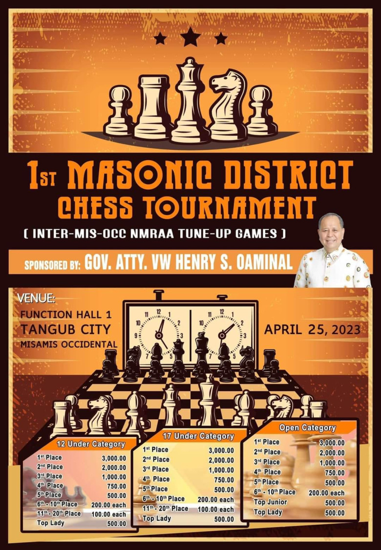 Urbiztondo told Newsfort that the tournament is sponsored by Misamis Occidental Governor VW Henry Sevilla Oaminal is a Past District Deputy Grand Master and Hiram Awardee, a Mason supporter.