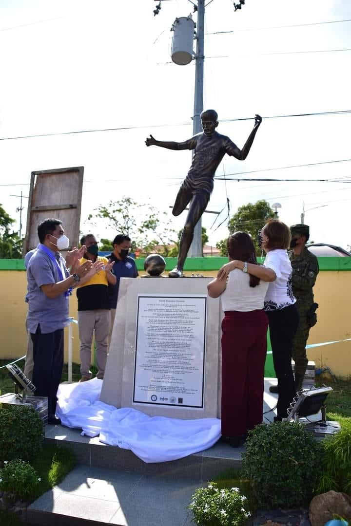 The city government built the statue showing Absalon kicking a soccer ball at the sports complex of Masbate.
