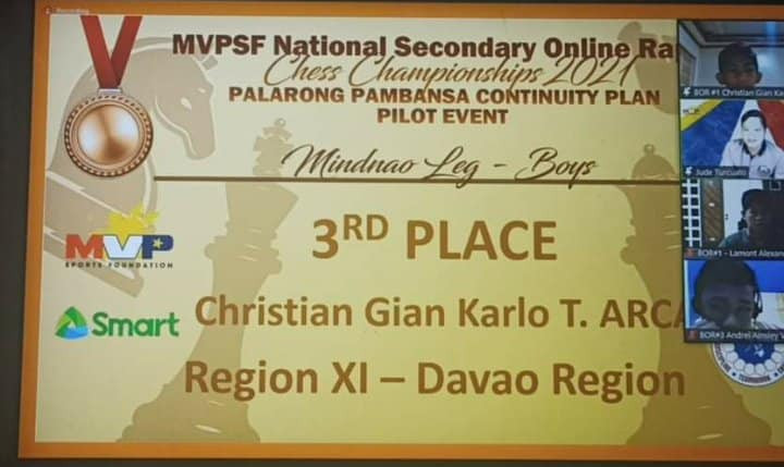 Recently, Lumangtad and Arca were declared as overall champions in the Davao del Norte chess online tournament.