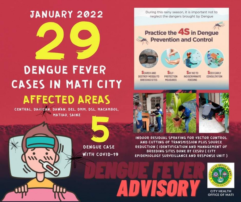 Sa isang pahayag, sinabi ni Mati City Health Officer Dr. Ben Hur Catbagan Jr., na Enero nitong taon, umabot na sa 29 ang nagka-dengue kung saan lima dito ay kumpirmado na infected ng COVID-19 at isa dito ang namatay.
