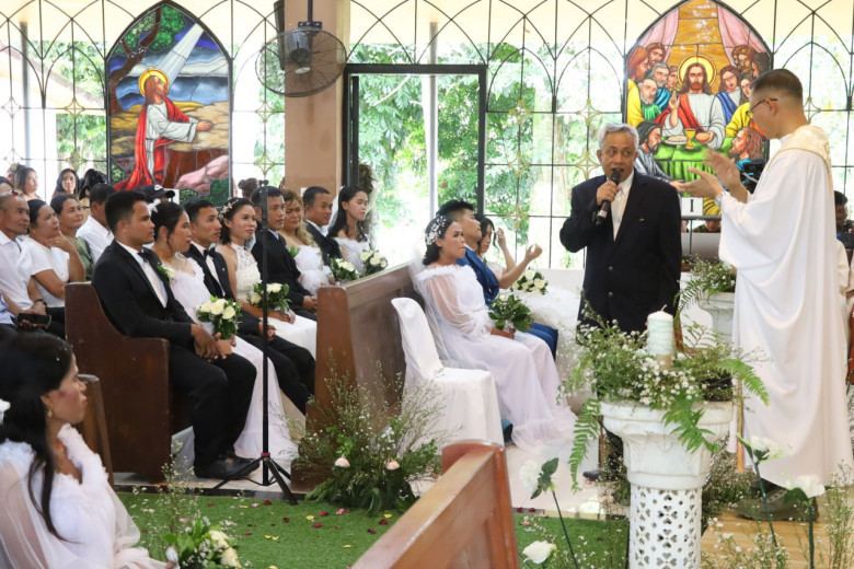 The reception followed at the 60IB Headquarters, Camp Morgia, Barangay Doña Andrea, Asuncion, Davao del Norte, where principal sponsors including local officials and military officers have pledged their continued support to the couples as they start their new lives.