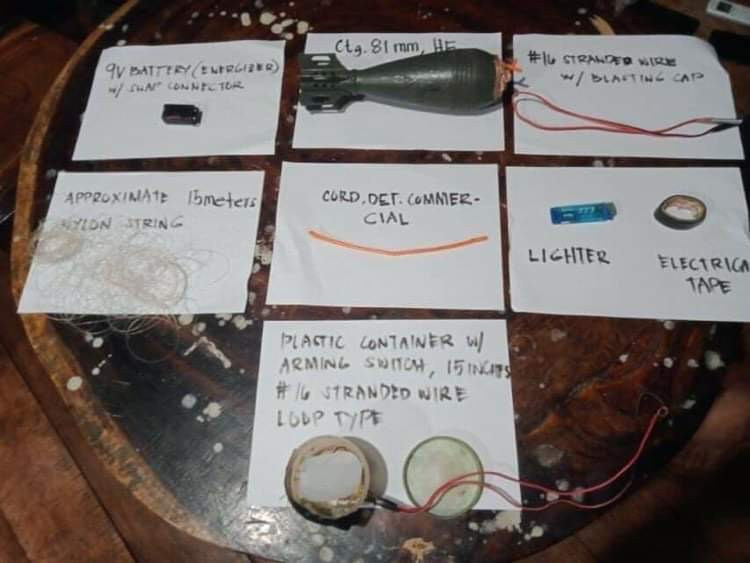 Nakuha sa iyang posesyon ang usa ka bomba ug mga sangkap sa paghimo ug bomba.