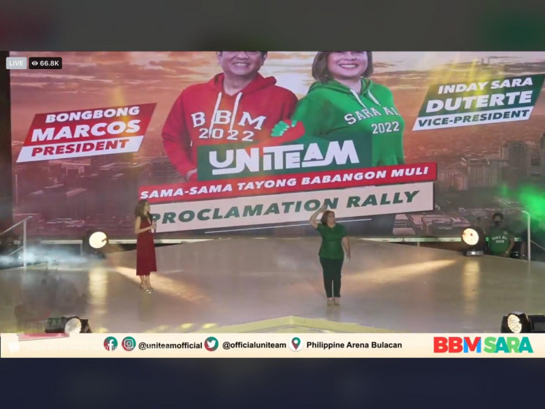 “BBM and I and the entire UniTeam are truly humbled for your strong support; despite the strict health protocols, you (coming from Luzon, Visayas, Mindanao) came here to showyour support. Maraming salamat,” Sara said.